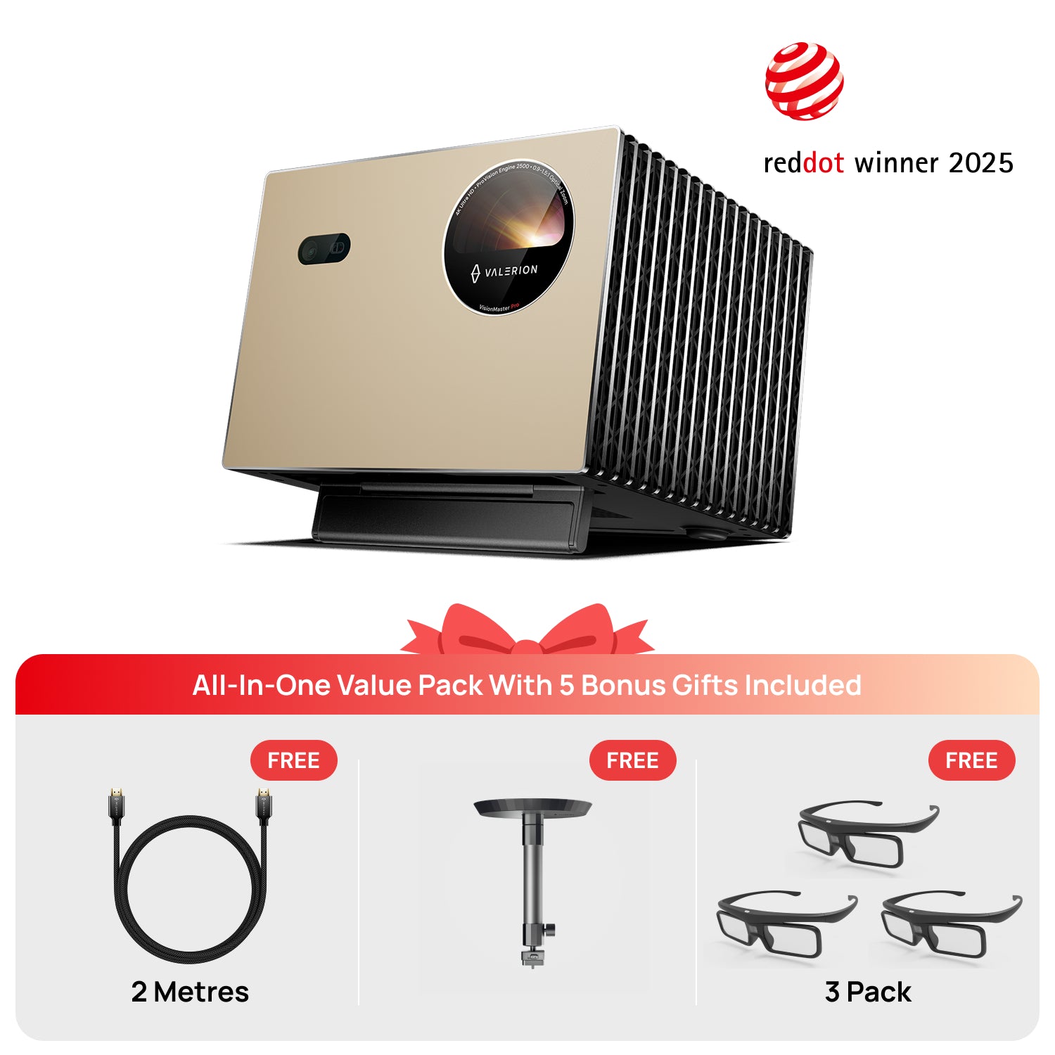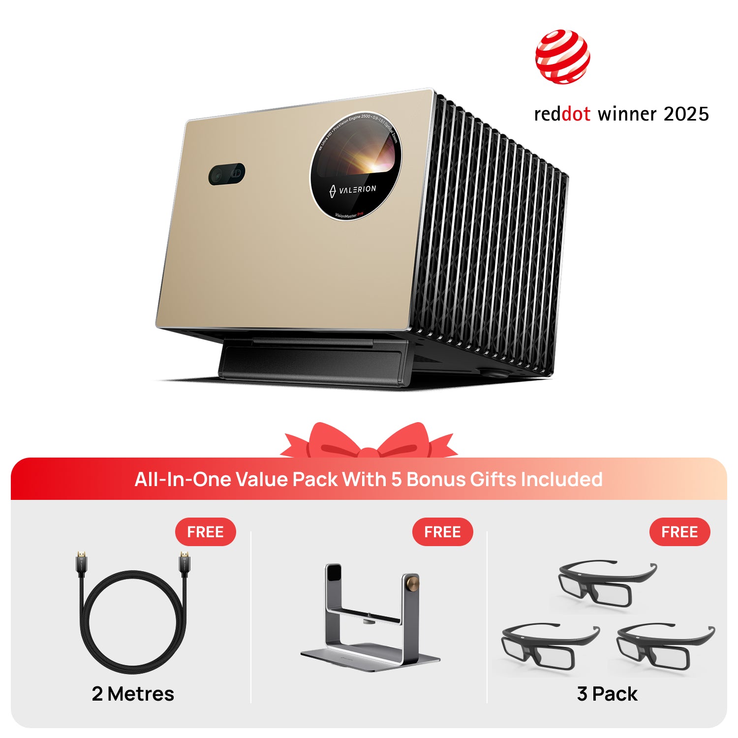 VisionMaster Pro + Stand + 3D Glasses (3 Pack) +HDMI